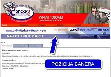cnosti da budete zapazeni. O pozicioniranjui vrsti banera Vi odlucujete, a mi ga besplatno izradjujemo. Informacije o cenama, po-
